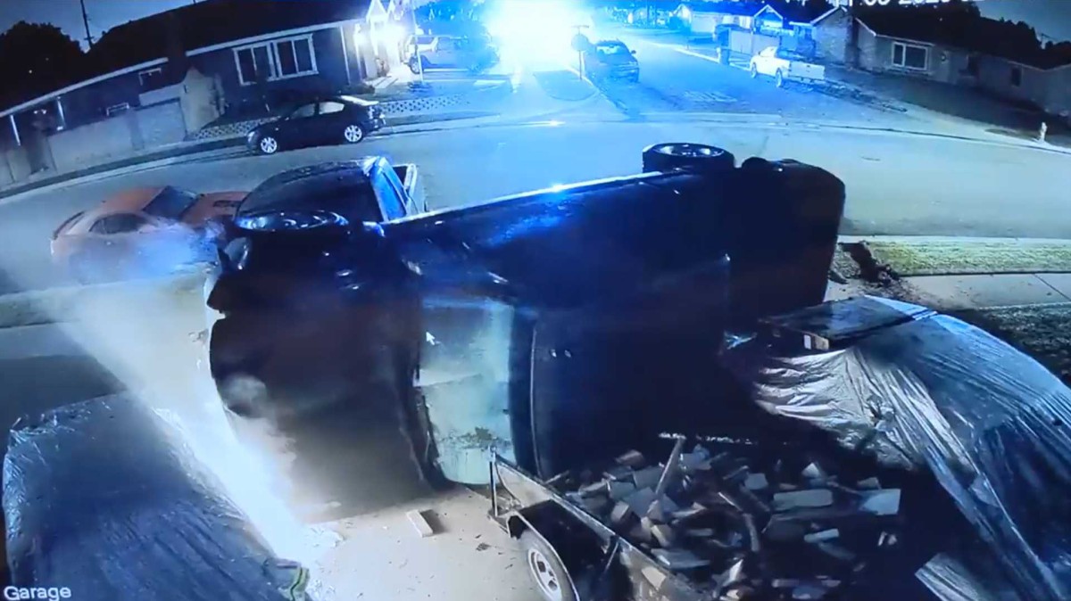 Από όλα τα μέρη που μπορεί να έχεις ένα αυτοκινητιστικό ατύχημα, το προσωπικό σου γκαράζ βρίσκεται αρκετά χαμηλά στην λίστα με τις πιθανότητες, πόσο μάλλον το να έχεις πολλαπλά προσωπικά σου οχήματα να εμπλέκονται. Κι όμως αυτό ακριβώς συνέβη σε έναν ανυποψίαστο κάτοικο της Καλιφόρνια, όταν μία καταδίωξη της αστυνομίας κατέληξε στο πάρκινγκ μπροστά από το σπίτι του, με ένα pick up να «προσγειώνεται» πάνω στα δύο παρκαρισμένα Mustang του.