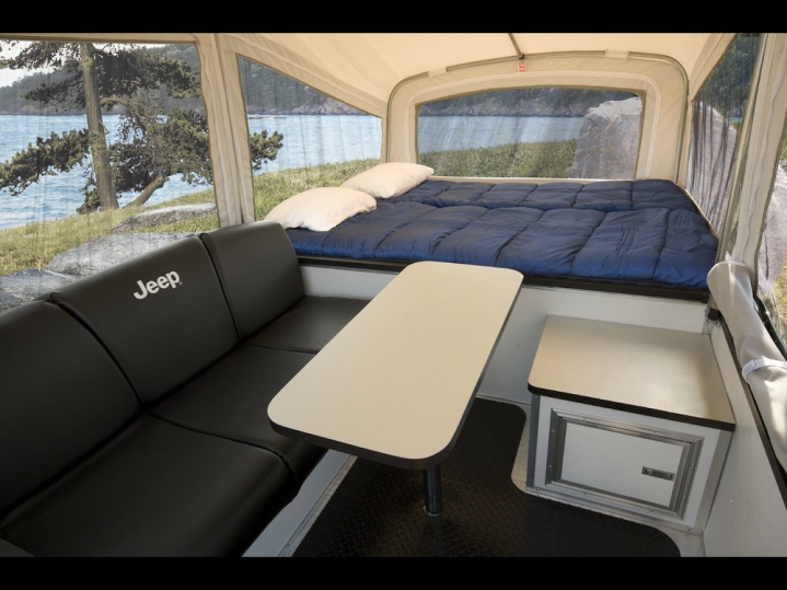 Προς το παρόν η «τροχοσκηνή» της Jeep είναι διαθέσιμη μόνο στην Αμερική. Η σχεδίαση της σκηνής είναι στα πρότυπα του Wrangler, με παρόμοια φωτιστικά σώματα και φτερά. Η έκδοση Trail Edition διαθέτει Mud ελαστικά της BF Goodrich, ίδια με αυτά του Wrangler Rubicon και μπορεί να κοιμίσει συνολικά τέσσερα άτομα, κοστίζοντας περί τα 7.000 €. Η πιο άγρια έκδοση Extreme Trail Edition (8500€) έχει μεγαλύτερη απόσταση από το έδαφος, λόγω μεγαλύτερων τροχών και μια μεταλλική προστατευτική ποδιά.