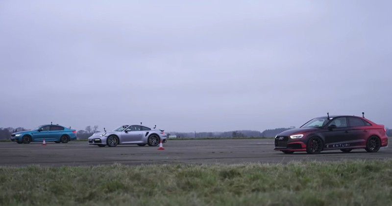 Drag Race: Audi RS3 vs BMW M5 vs Porsche 911 Turbo S
