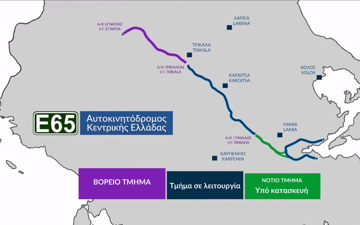 Κεντρική θέση στις επαφές του Πρωθυπουργού Κυριάκου Μητσοτάκη με τοπικούς παράγοντες κατά την επίσκεψή του στην Περιφέρεια Θεσσαλίας, είχε η πρόοδος των έργων για την ολοκλήρωση του Ε65 (συνολικού μήκους 181,5 χλμ). Πριν από λίγες ημέρες έφθασε η επίσημη θετική απάντηση της Ευρωπαϊκής Επιτροπής για τη συμβατότητα με το κοινοτικό δίκαιο του έργου υποδομής του βόρειου τμήματος του Αυτοκινητόδρομου Κεντρικής Ελλάδας, τμήματος που θα συνδέει την πόλη των Τρικάλων με την Εγνατία Οδό.