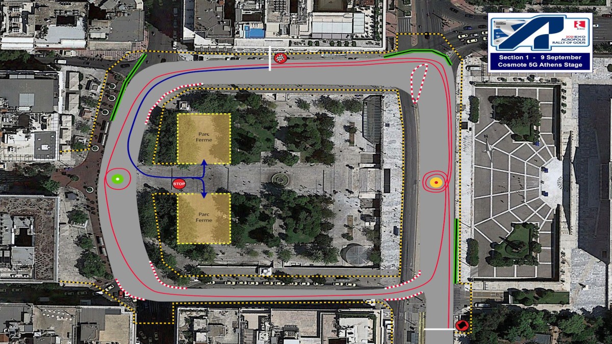 Την Πέμπτη 9 Σεπτεμβρίου 2021 και περί ώρα 18:00΄, θα διεξαχθεί η 1η Ειδική Διαδρομή (“COSMOTE 5G Athens Stage”) του EKO Acropolis Rally 2021, στη διαδρομή: