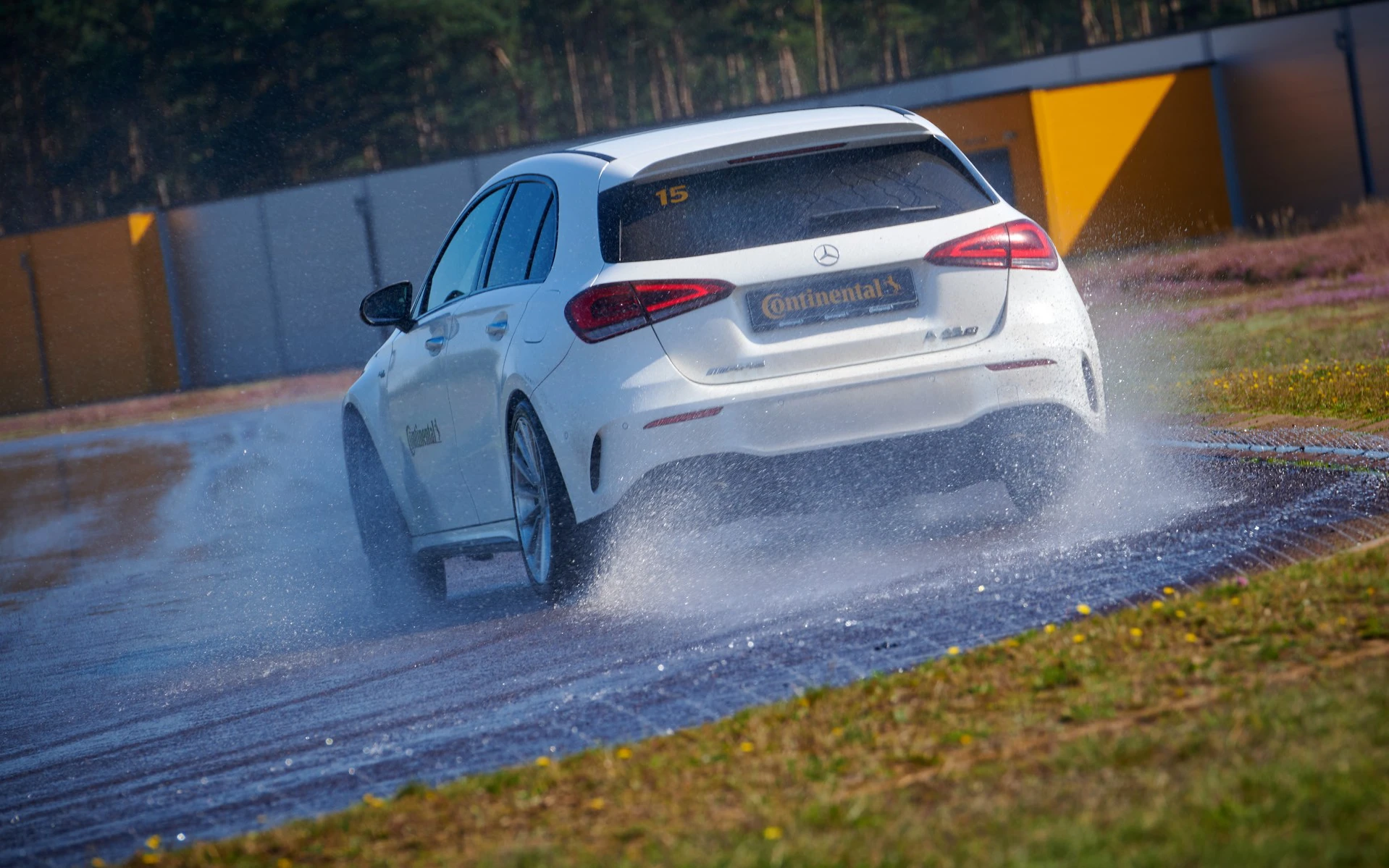 Τις κορυφαίες επιδόσεις του Continental SportContact 7 συγκεκριμένα, είχαμε την ευκαιρία να τις διαπιστώσουμε απέναντι σε έναν πολύ ικανό αντίπαλο: τον προκάτοχό του. Στις δοκιμές φρεναρίσματος που πραγματοποιήσαμε με μερικά πανομοιότυπα VW Golf GTI, εκείνα που φορούσαν SportContact 6 χρειάζονταν τουλάχιστον 2 μέτρα παραπάνω για να ακινητοποιηθούν από τα 80 km/h, σε βρεγμένη άσφαλτο με τον ίδιο οδηγό στο τιμόνι. Ακόμα περισσότερο ενδιαφέρον όμως είχε η επόμενη άσκηση, για τη σύγκριση παλιού και νέου στη βρεγμένη πίστα, στο τιμόνι κάποιων Mercedes-AMG A 45 S.