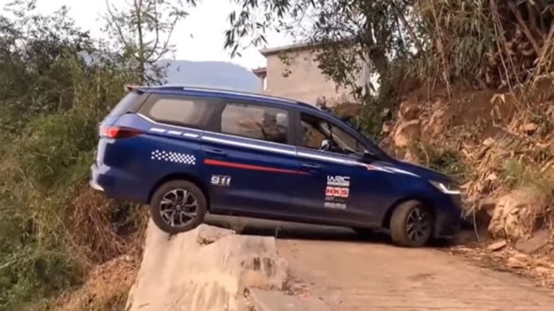 Ο λόγος που βάλαμε το γκρεμό σε εισαγωγικά είναι διότι αν δούμε το ίδιο πλάνο από άλλη γωνία, τότε είναι εμφανές πως από κάτω δεν βρίσκεται… «το χάος» αλλά ένας ακόμη δρόμος στα 3 μέτρα. Όπως και να ‘χει, ο ελιγμός που καταφέρνει ο οδηγός του μπλε βαν είναι τουλάχιστον εντυπωσιακός, με το όχημα να πατά κυριολεκτικά στο χείλος και πολλές φορές πέρα από αυτό.