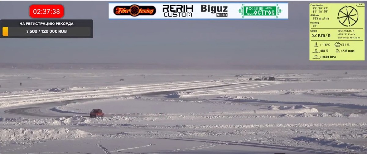 Ο Ρώσος μετέβη έως τη λίμνη Kaldi της πόλης Chelyabinsk, η οποία λόγω των πολύ χαμηλών θερμοκρασιών είναι καλυμμένη με πάγο και χιόνι αυτή την εποχή. Αφού ζέστανε τον κινητήρα του Lada 2106, ξεκίνησε την πλαγιολίσθηση στην ειδικά διαμορφωμένη διαδρομή.