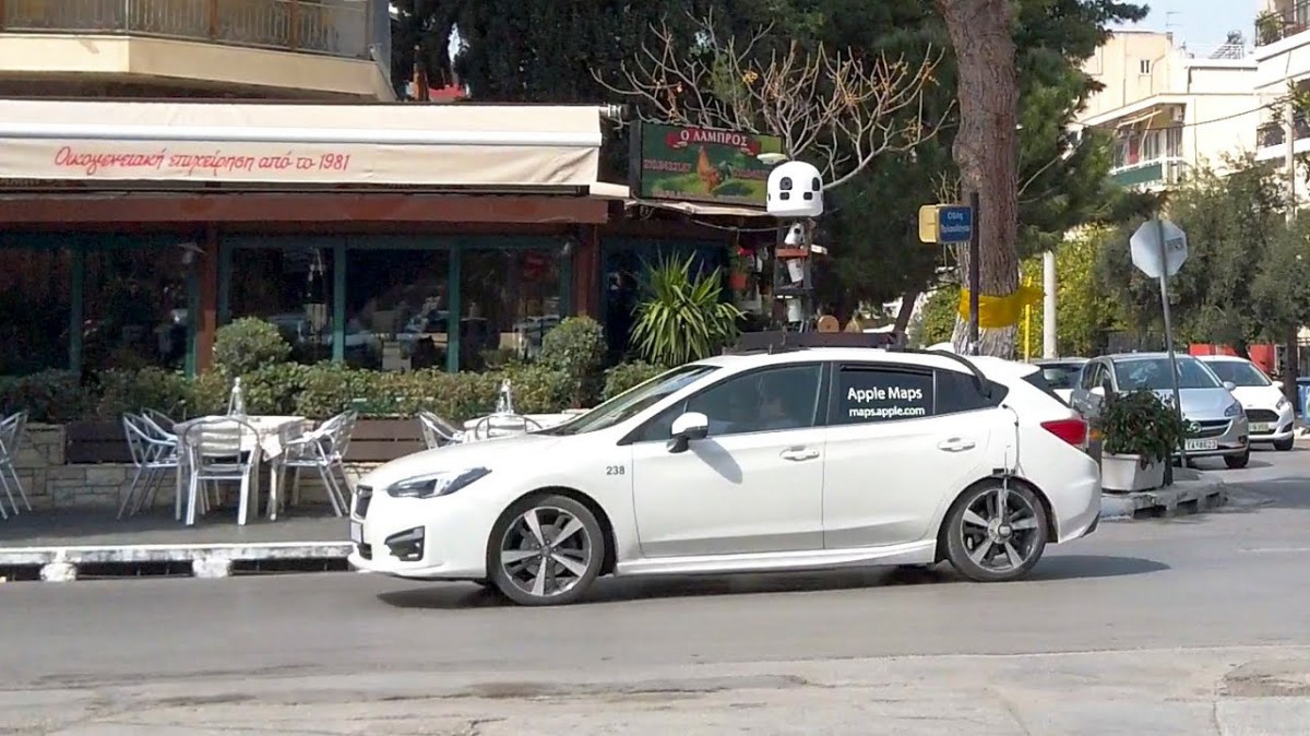 Πολλοί έχουν παρατηρήσει τα Subaru Impreza που χρησιμοποιεί η εταιρεία από το Κουπερτίνο της Καλιφόρνια. Κινούνται στους ελληνικούς δρόμους και συλλέγουν δεδομένα για τη λειτουργία «Εμφάνιση τριγύρω», αντίστοιχη με το Street View της Google. Ο χρήστης των χαρτών μπορεί να πατήσει στο πεδίο «Εμφάνιση τριγύρω» και να δει την περιοχή για την οποία ενδιαφέρεται σαν να περπατάει στον συγκεκριμένο δρόμο που διάλεξε. Αυτό βοηθά στην ανάπτυξη καλύτερου διαδραστικού περιεχομένου αλλά και βοήθεια αν ψάχνει κάτι πολύ συγκεκριμένο και θέλει να έχει πλήρη εικόνα του προορισμού του.