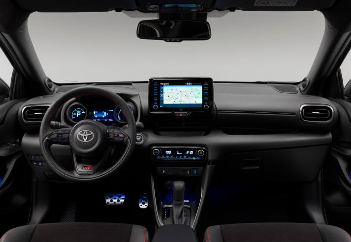 Στο εσωτερικό, ο καταιγισμός από σήματα GR συνεχίζεται, με τις κόκκινες ραφές, τα σπορ καθίσματα που είναι διαθέσιμα και με σουέντ επένδυση, το δερμάτινο τιμόνι με το σχετικό λογότυπο, οι ασημί λεπτομέρειες και το νέο φινίρισμα, να ολοκληρώνουν την ελκυστική εικόνα του supermini.