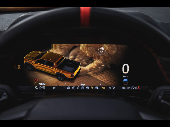 Οι επιβάτες του νέου Ranger Raptor απολαμβάνουν επίσης την τελευταία λέξη της ψηφιακής τεχνολογίας. Στη high‑tech καμπίνα του «θηρίου» της Ford δεσπόζει μία πλήρως ψηφιακή οθόνη 12,4 ιντσών καθώς και μία κεντρική οθόνη αφής 12 ιντσών, σε διάταξη πορτραίτου, όπως και στην ηλεκτρική Mustang Mach-E, που υποστηρίζουν ιδανικά τα συστήματα ελέγχου, ενημέρωσης, συνδεσιμότητας και ψυχαγωγίας του αυτοκινήτου – και φυσικά το προηγμένο SYNC 4A νέας γενιάς της Ford που προσφέρει ασύρματη συμβατότητα Apple CarPlay και Android Auto χωρίς έξτρα χρέωση. Επίσης, η οθόνη αφής στην κεντρική κονσόλα είναι συνδεδεμένη με μία κάμερα 360-μοιρών που διευκολύνει το παρκάρισμα τόσο εντός πόλης όσο και εκτός αυτής.