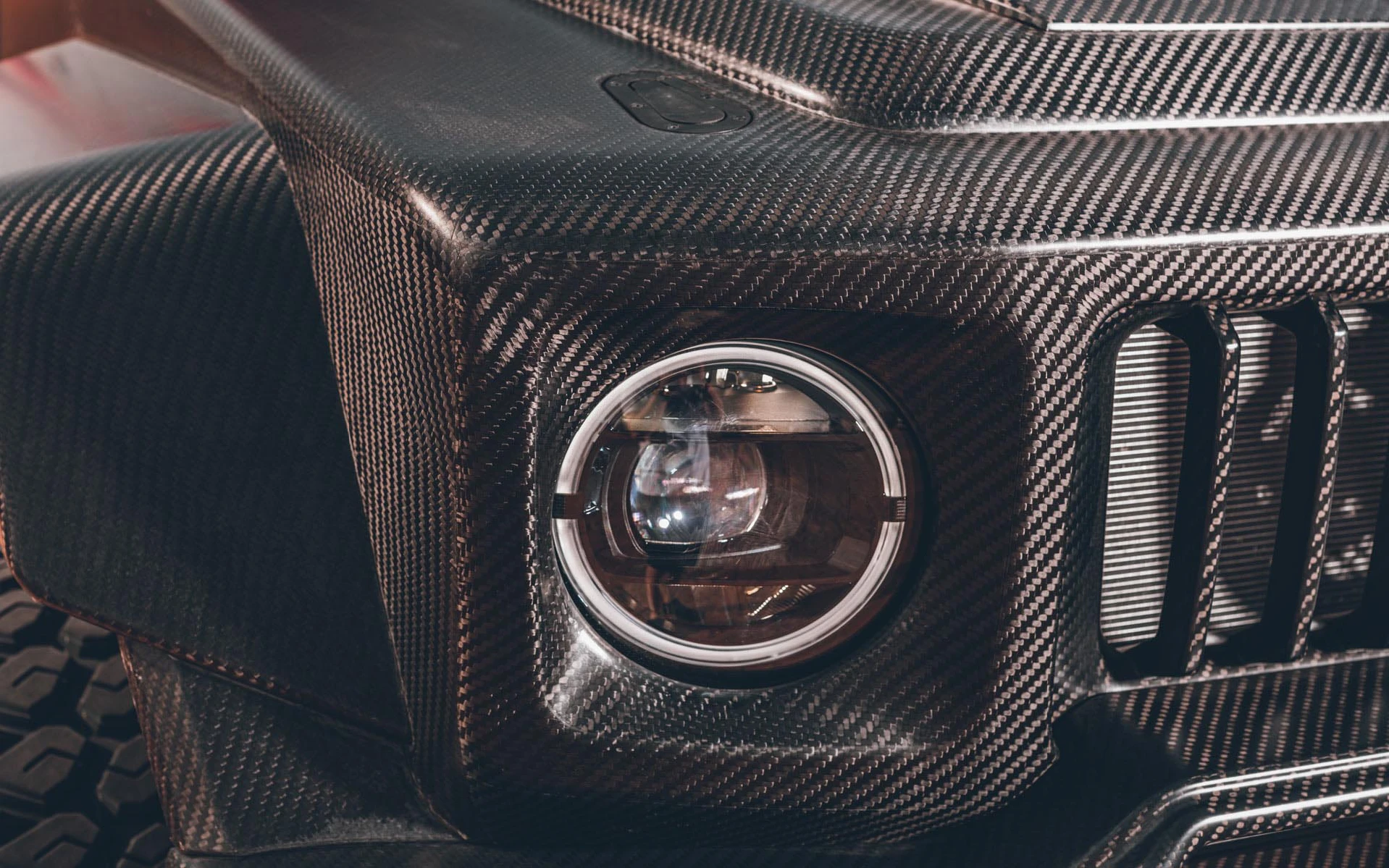 τεράστιους τροχούς, εισαγωγές αέρα στο καπό, εξατμίσεις στο πλάι,