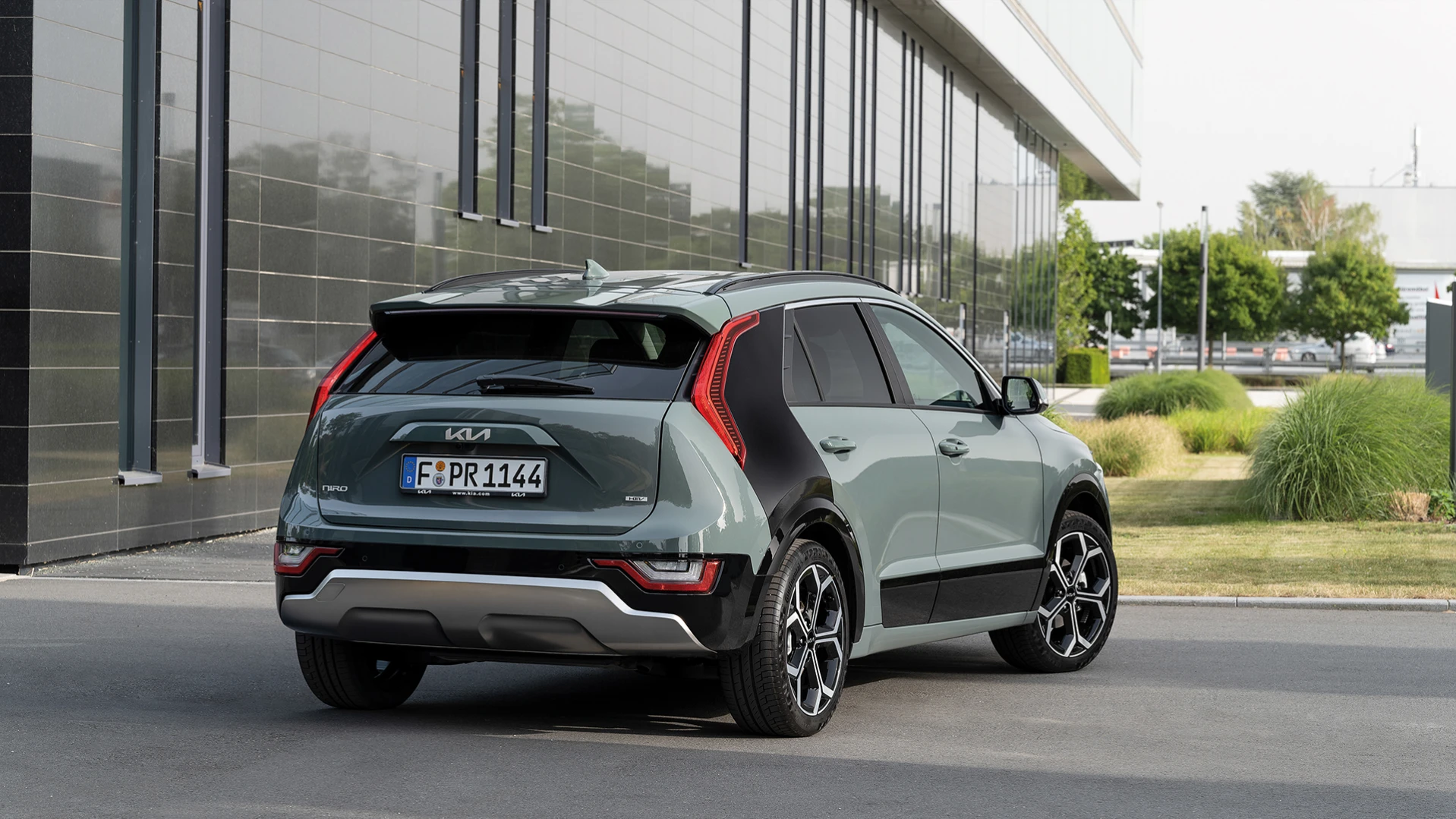 Στο πλάι του Niro, οι καθαρές γραμμές οδηγούν και στο σχεδιαστικό highlight αυτής της γενιάς. Πρόκειται για την τρίτη κολώνα η οποία εκτός του ότι προσφέρεται και με διαφορετικούς χρωματισμούς σε σχέση με το υπόλοιπο αμάξωμα, παράλληλα βελτιώνει και την αεροδυναμική χάρη στις οπές που κρύβονται από πίσω με σκοπό την μείωση των στροβιλισμών. Κάπως έτσι έχει φτάσει ο αεροδυναμικός συντελεστής της νέας γενιάς να είναι Cd 0,29. Στο πίσω μέρος τα μοντέρνα φωτιστικά σώματα τεχνολογίας LED σε σχήμα boomerang τα οποία εφάπτονται πάνω στο «φιλέτο» της τρίτης κολώνας με την διαφορετική απόχρωση (εάν αυτή έχει επιλεχθεί), ολοκληρώνουν την νέα, φρέσκια εικόνα του μοντέλου εξωτερικά.