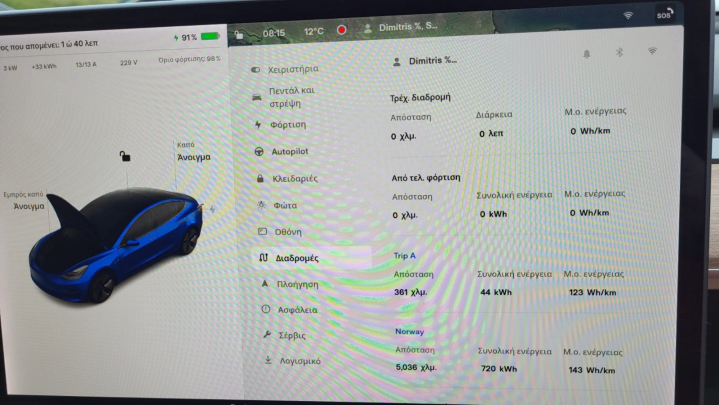 Ο Δημήτρης και η Ελένη έφτασαν στο Nordkapp έχοντας καλύψει πάνω από 5.000 km με το Tesla Model 3, καταναλώνοντας 720 kWh ενέργειας και με την μέση κατανάλωση να είναι στις 14,3 kWh/100 km.