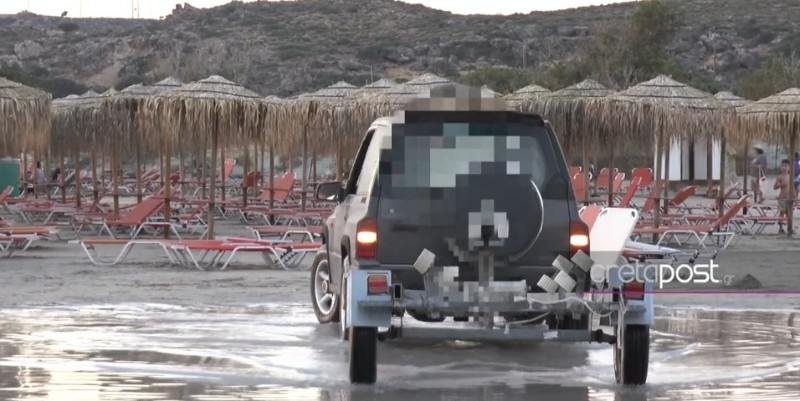 Ένας ανεκδιήγητος οδηγός εισέβαλε με το τετρακίνητο όχημά του και το τρέιλερ στη μαγευτική παραλία της Κρήτης, κάνοντας μανούβρες ανάμεσα στις ξαπλώστρες. Όπως αναφέρει το cretapost, οι προσπάθειες υποβάθμισης της περιοχής είναι εμφανείς και πραγματικά απορεί κανείς αν όλα αυτά τα πραγματικά απίστευτα περιστατικά συμβαίνουν επί τούτου ή από αδιαφορία των αρμόδιων φορέων.