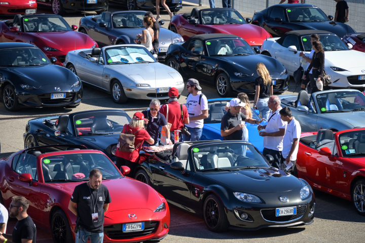 Στην «παρέλαση» βρέθηκαν μαζί και οι τέσσερις γενιές του εμβληματικού MX-5. Πραγματοποίησαν το γύρω της διάσημης πίστας υπό την επίβλεψη του κριτή του Παγκόσμιου Ρεκόρ Guinness, ο οποίος στις 18:00 επισημοποίησε το ρεκόρ, δίνοντας χαρά σε χιλιάδες οπαδούς του MX-5 από ολόκληρη την Ιταλία και την Ευρώπη. Το μοναδικό αυτό ράλι έδωσε στην ομάδα της Mazda Ιταλίας την ευκαιρία να προσθέσει ένα σημαντικό κεφάλαιο στην ιστορία του roadster με τις μεγαλύτερες πωλήσεις στον κόσμο.