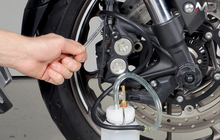 Το αμέσως επόμενο που μπορούμε να ελέγξουμε είναι το σύστημα πέδησης. Ανά δύο χρόνια είναι απαραίτητη η αλλαγή των υγρών φρένων που με την πάροδο του καιρού στο υδραυλικό κύκλωμα, αν και αεροστεγώς κλεισμένο, εμφανίζεται υγρασία επηρεάζοντας τις επιδόσεις του φρεναρίσματος. Συνήθως η υγρασία εισέρχεται από την δεξαμενή υγρών, όπου η φλάντζα που την σφραγίζει με τον καιρό χάνει τον όγκο της, σκληραίνει ή κόβεται. Αν ο αναβάτης αποφασίσει να πραγματοποιήσει την αλλαγή μόνος του, χρειάζεται ιδιαίτερη προσοχή στο να μην πάρει αέρα το κύκλωμα. Για την αποφυγή αυτού δεν πρέπει να αδειάσει το υγρό μονομιάς αλλά σταδιακά. Δηλαδή να αφαιρεί όσο είναι η χωρητικότητα της δεξαμενής της τρόμπας του φρένου και μετά να συμπληρώνει με νέο. Δεν είναι απλή υπόθεση και θέλει ιδιαίτερη προσοχή, ιδίως με τον χειρισμό του υγρού είναι ικανό να διαβρώσει οποιαδήποτε επιφάνεια έρθει σε επαφή. Σε αυτή τη περίπτωση πρέπει να ξεπλύνουμε άμεσα με άπλετο νερό για να προλάβουμε την ζημιά. Συστήνεται η δουλειά αυτή να γίνει από ειδικό. Με τα φρένα δεν κάνουμε πειράματα.