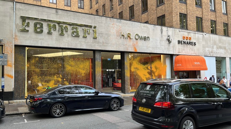 Μέλη του κινήματος «Just Stop Oil» επιχείρησαν και κατάφεραν να προκαλέσουν ζημιές σε κεντρικές αντιπροσωπείες των Ferrari, Bentley και Bugatti στο Λονδίνο, διαμαρτυρόμενοι για τα ορυκτά καύσιμα και τις επιπτώσεις στο περιβάλλον. Συγκεκριμένα, δύο γυναίκες ψέκασαν με πορτοκαλί μπογιά τις βιτρίνες των πολυτελών καταστημάτων στην εύπορη συνοικία Mayfair στο West End.