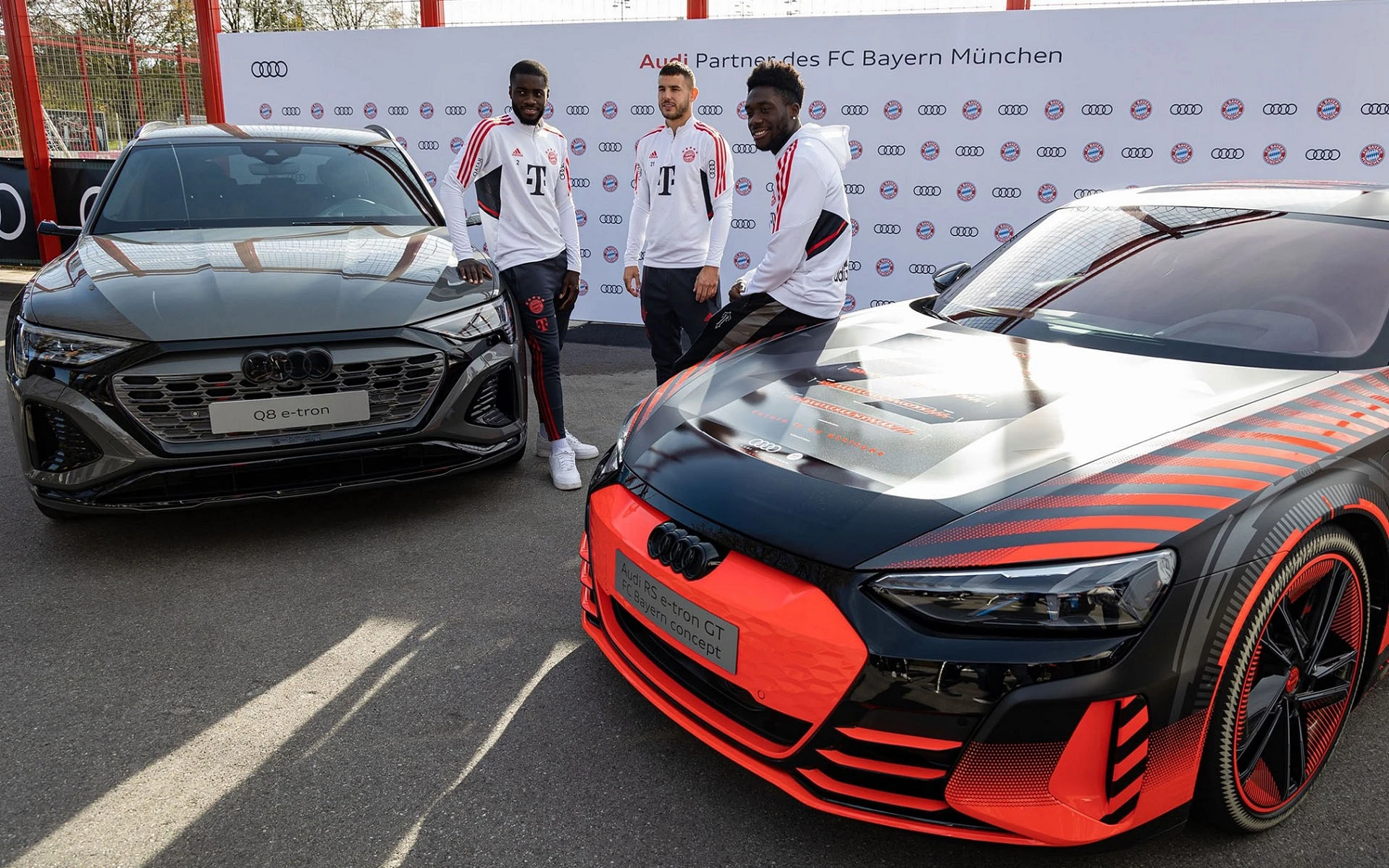 Οι παίκτες και τα στελέχη της FC Bayern οδηγούν τώρα τα premium πλήρως ηλεκτρικά Audi RS e-tron GT, Audi Q4 e-tron και Audi e-tron Sportback ως εταιρικά αυτοκίνητα. Κατά την παράδοση των αυτοκινήτων παρουσιάστηκε και το πρωτότυπο Audi RS e-tron GΤ FC Bayern, το οποίο και διαθέτει έναν επετειακό χρωματισμό προς τιμή της συμπλήρωσης 20 ετών συνεργασίας ανάμεσα στις δύο πλευρές. Το μπροστινό μέρος και η οροφή είναι ντυμένα με αυτό το μοτίβο σα να φορούν μια «επετειακή φανέλα» της ομάδας, ενώ ιδιαίτερη πινελιά στο πίσω μέρος δίνει το έμβλημα της FC Bayern Μονάχου που φιλοξενείται εκεί. Κάθε χρονιά τιμάται ως κάτι ξεχωριστό και έχει την δική της ιδιαίτερη θέση σε ένα χρονοδιάγραμμα που είναι διαμορφωμένο σε στυλ διαμαντιού και έχει κόκκινη απόχρωση σε μαύρο φόντο. Η Audi υποστηρίζει την πιο επιτυχημένη ποδοσφαιρική ομάδα της Γερμανίας από το 2002, ενώ είναι μέτοχος της FC Bayern München AG από το 2011. Το 2021 η Audi ξεκίνησε να υποστηρίζει και τη γυναικεία ομάδα της FC Bayern.