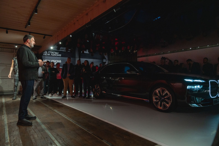 Η BMW Σφακιανάκης οργάνωσε μια ξεχωριστή βραδιά για να παρουσιάσει το εντυπωσιακό μοντέλο, δημιουργώντας ένα υψηλής αισθητικής Closed Room που θύμιζε ένα σύγχρονο χώρο τέχνης και βρισκόταν στον εξωτερικό χώρο των εγκαταστάσεών της. Έχοντας ως στόχο την προβολή της σύμπραξης τέχνης και καινοτομίας ο χώρος φιλοξενούσε το έργο τέχνης Standing Figures του Sean Henry, ο οποίος είναι ίσως ο σημαντικότερος εν ζωή εκπρόσωπος της ρεαλιστικής γλυπτικής στο Ηνωμένο Βασίλειο και το BMW i7, την επιτομή της καινοτομίας στην αυτοκίνηση.