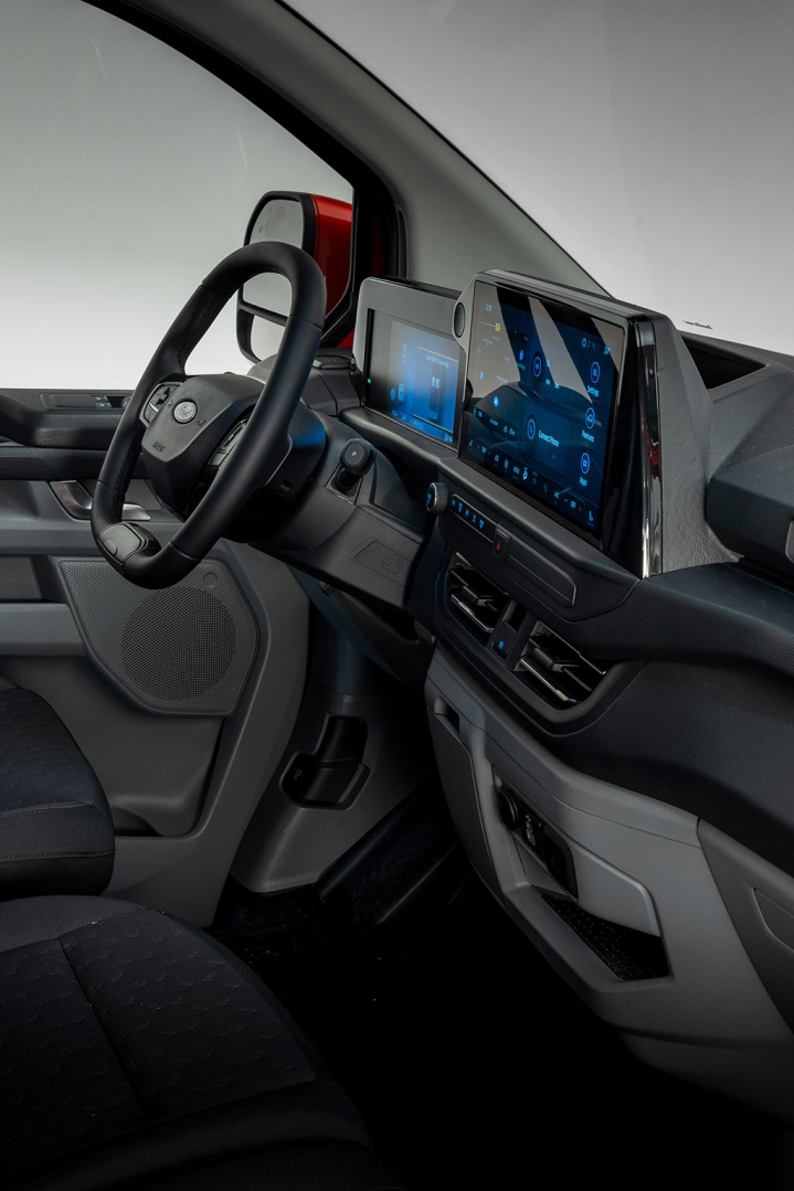 Τα νέα Ford Transit Custom και Tourneo Custom προσφέρουν ένα σύγχρονο και πλούσιο σε εξοπλισμό εσωτερικό που καθιστά τις μετακινήσεις το ίδιο ευχάριστες, ξεκούραστες και ασφαλείς για όλους. Χάρη στη μετακίνηση των εμπρός τροχών προς τα εμπρός, ο χώρος για τα πόδια των επιβατών είναι τώρα αναβαθμισμένος. Επίσης, το ηλεκτρικό χειρόφρενο, το σύστημα εισόδου χωρίς κλειδί (keyless entry) και η νέα, μερικώς ψηφιακή οθόνη 8” εμπρός από τον οδηγό, σε συνδυασμό με την κεντρική οθόνη αφής 13” με συνδεσιμότητα Ford SYNC 4 και ενσωματωμένο μόντεμ 5G, είναι τα νέα στοιχεία σε σχέση με το παρελθόν που έρχονται να ενδυναμώσουν τους τομείς της άνεσης για ακόμα πιο απρόσκοπτες μετακινήσεις.
