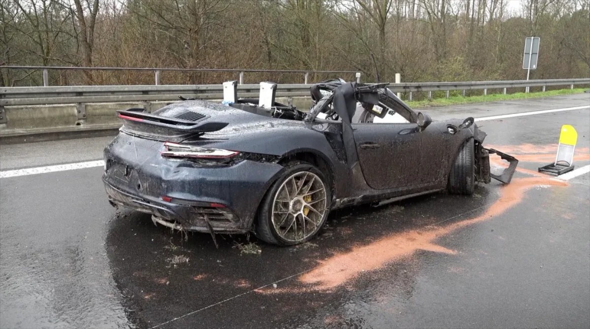 Όλα ξεκίνησαν όταν ο 42χρονος οδηγός μιας Porsche Cayman έχασε τον έλεγχο του οχήματος λόγω της βροχής στον Α3, λίγο έξω από τα σύνορα με την Ολλανδία. Το γερμανικό sportcar έσπασε τις προστατευτικές μπάρες και κατέληξε στο χαντάκι. Παρά τη σφοδρότητα της πρόσκρουσης, οι δύο επιβάτες βγήκαν από το αυτοκίνητο, με τον 39χρονο οδηγό της δεύτερης Porsche που ακολουθούσε να σταματά για βοήθεια.