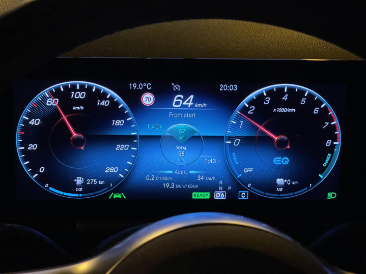 Σε αυτή τη φωτογραφία, βλέπουμε πόσα χιλιόμετρα καταφέραμε να καλύψουμε αποκλειστικά και μόνο με ρεύμα. 57 χιλιόμετρα στο σύνολο, μέχρι να πάρει μπροστά ο 1.33 turbo, ωστόσο εδώ να πούμε ότι στα τελευταία «ηλεκτρικά» χιλιόμετρα που κάναμε, βρεθήκαμε σε αυτοκινητόδρομο με ανηφορική κλίση που έριξε γρήγορα την εκτιμώμενη αυτονομία. Αν και το trip computer έγραφε ότι θα μπορούσαμε να κάνουμε 10 km ακόμα με το απόθεμα στις μπαταρίες, μόλις κινηθήκαμε γρηγορότερα, σε ανηφορικό έδαφος, η σχετική ένδειξη «κατρακύλησε» γρήγορα, μέχρι που μηδένισε. Σε αστικό και υπεραστικό περιβάλλον, εκτιμούμε ότι τα 60 χιλιόμετρα είναι ρεαλιστικό σενάριο. Στον αυτοκινητόδρομο, η μέγιστη αυτονομία είναι κάπου στα 40-45 km. Η μέση κατανάλωση που καταγράψαμε ήταν 19,3 kWh/100 km.