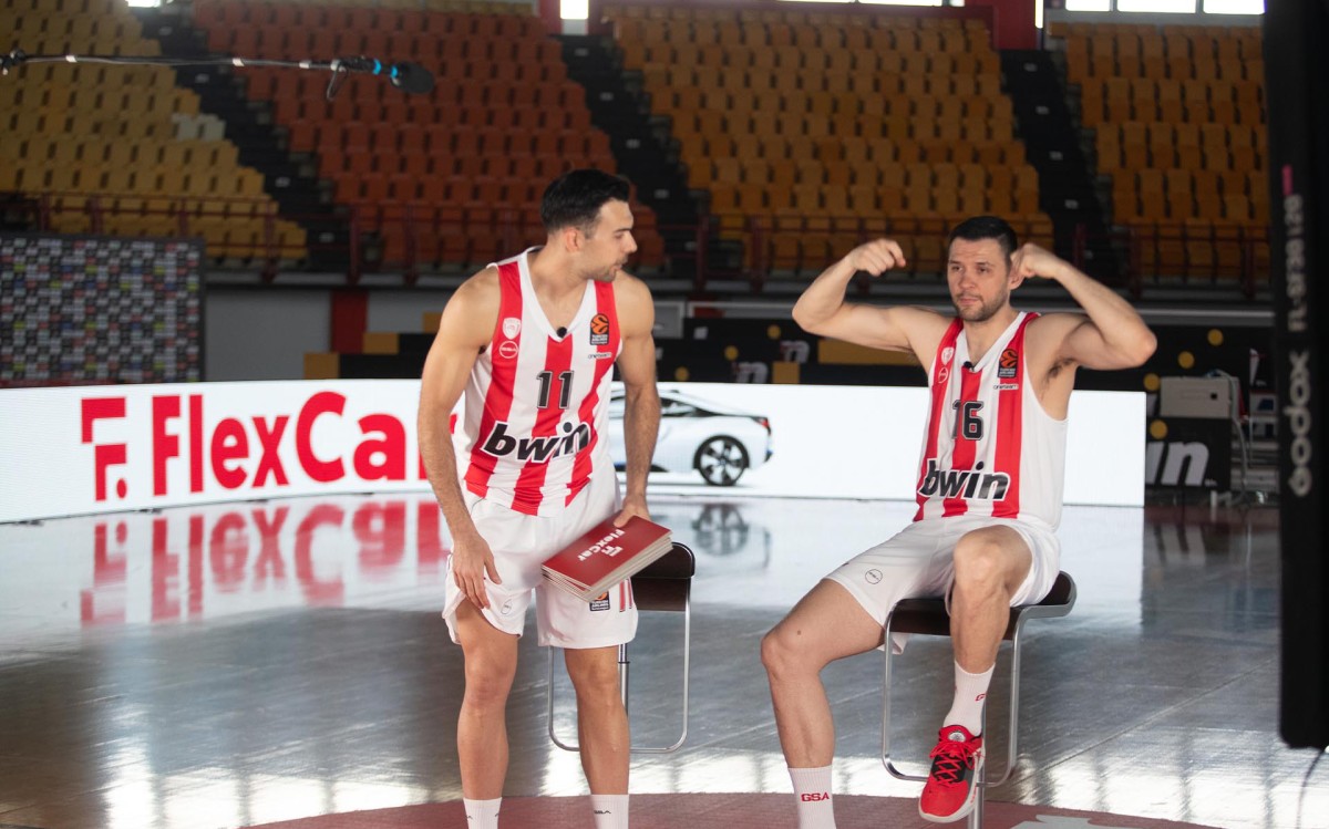Μπροστά στην κάμερα της FlexCar οι παίκτες του Ολυμπιακού δοκιμάζουν τις μηχανολογικές τους γνώσεις γύρω από το αυτοκίνητο.