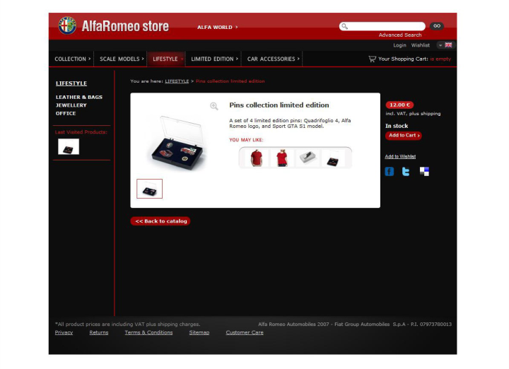 Μετά τη Fiat, είναι σειρά της Alfa Romeo να αποκτήσει μια ιστοσελίδα με προϊόντα αφιερωμένα αποκλειστικά στον κόσμο της. Στο νέο διαδικτυακό κατάστημα της Alfa Romeo, οι επισκέπτες έχουν τη δυνατότητα να ενημερώνονται για τα πιο πρόσφατα αυθεντικά προϊόντα. Το λανσάρισμα του www.store.alfaromeo.com συμπέφτει με τη συμπλήρωση των εκατό χρόνων από την ίδρυση της Alfa Romeo. Με στόχο να αντικατοπτρίζει το σπορτίφ πνεύμα και το μοναδικό στιλ της ιταλικής φίρμας, η νέα ιστοσελίδα περιλαμβάνει μια εκτεταμένη γκάμα εξουσιοδοτημένων προϊόντων, κατασκευασμένα από κορυφαίους συνεργάτες, όπως οι Jaggy και Italia Independent, καθώς και είδη δώρου, αξεσουάρ αυτοκινήτου και εμπορικά προϊόντα. Στο νέο Alfa store θα βρείτε ακόμη λειτουργίες κοινωνικής δικτύωσης, που σας δίνουν τη δυνατότητα να μοιράζεστε τις ανακαλύψεις και τις αγορές σας με τους φίλους σας στο Facebook, το Twitter και το Delicious. Η ιστοσελίδα παρέχει επίσης αποκλειστικές περιορισμένες εκδόσεις, ειδικές προσφορές και, σύντομα, θα έχετε τη δυνατότητα να ψηφίζετε μέσω αυτής τα αγαπημένα σας είδη. Με τον τρόπο αυτό, το νέο κατάστημα θα γίνει ακόμη πιο διαδραστικό και ικανό να ανταποκρίνεται στις ανάγκες των απανταχού Alfisti.