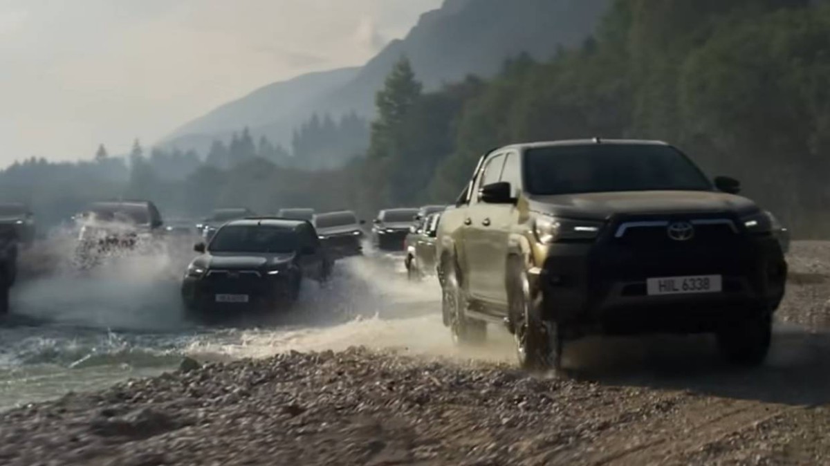Το βίντεο της Toyota έδειχνε δεκάδες Hilux να κινούνται εκτός δρόμου, συμπεριλαμβανομένου ενός ποταμού, ενώ μια φωνή περιέγραφε τη σκηνή ως «ένα από τα μοναδικά θεάματα που μπορεί κανείς να βιώσει στη φύση».