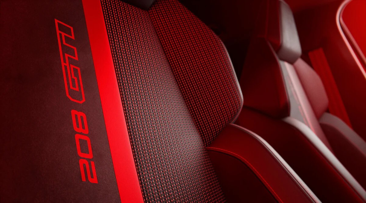 Αυτό το χρώμα επικρατεί και στην καμπίνα των επιβατών, προκαλώντας έντονα συναισθήματα με την πρώτη ματιά. Το συγκεκριμένο χρώμα εντοπίζεται στις μοκέτες, τα πατάκια και τις ζώνες ασφαλείας, αλλά και στη κεντρική κονσόλα και το τιμόνι. Βέβαια, τις εντυπώσεις κλέβουν τα μονοκόμματα μπάκετ καθίσματα με ενσωματωμένo προσκέφαλo, με μία κεντρική κόκκινη λωρίδα να παραπέμπει επίσης στο αρχέγονο 205 GTi.