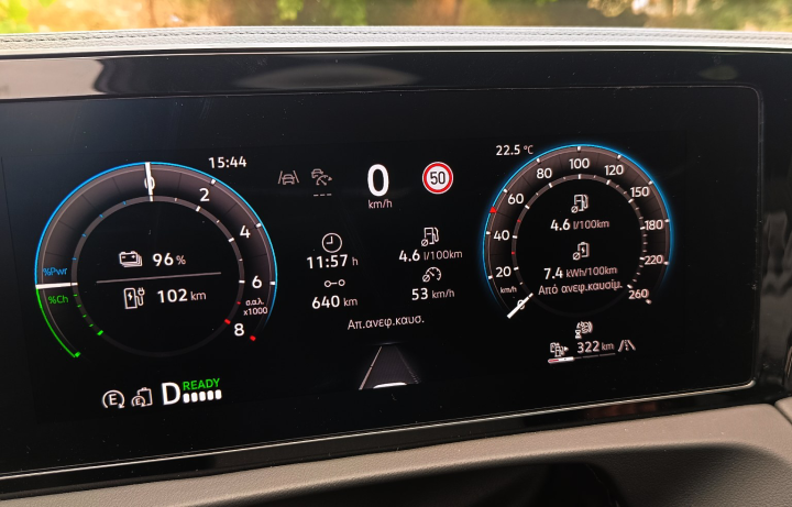 Αυτό έχει σαν αποτέλεσμα να προσφέρει εξαιρετική ποιότητα κύλισης και σε συνδυασμό με τη ισορροπημένη ρύθμιση της ανάρτησης να καθιστά το ταξίδι απόλυτα άνετο. Ιδιαίτερα σημαντικό είναι και το χαμηλό επίπεδο θορύβου, με το Tiguan να διαθέτει εξαιρετική ηχομόνωση. Οι 204 ίπποι και τα 350 Nm ροπή που συνδυαστικά αποδίδει το υβριδικό σύνολο σου επιτρέπουν να κινηθείς γρήγορα τόσο στον αυτοκινητόδρομο, όσο και στον επαρχιακό. Και το σημαντικότερο; Οικονομικά! Η κατανάλωση στο ταξίδι, και έχοντας ξεκινήσει με γεμάτη τη μπαταρία, κυμάνθηκε κάτω από τα 5 lt/100 km, ενώ νωρίτερα στην Αθήνα είδαμε τιμές κάτω από τα 2 lt/100 km.