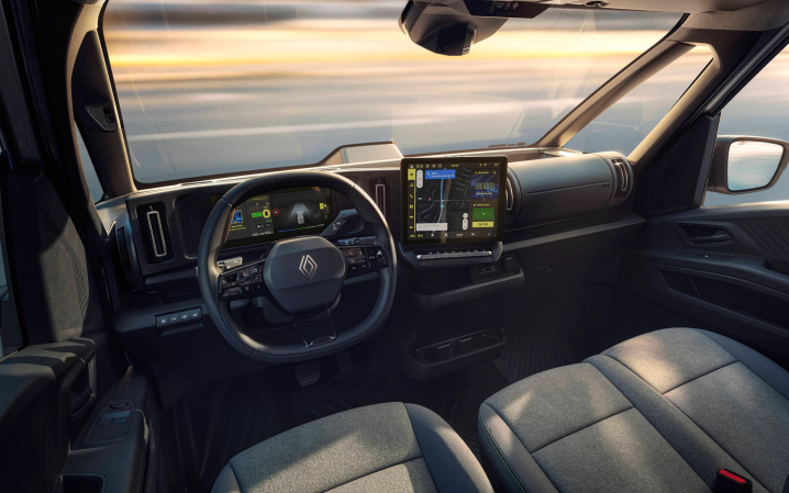 Στο εσωτερικό, η σχεδιαστική προσέγγιση είναι ιδιαίτερα: μία οριζόντια κυλινδρική κονσόλα εκτείνεται σε όλο το ταμπλό, φιλοξενώντας έναν πλήρως ψηφιακό πίνακα οργάνων 10” και μία κεντρική οθόνη 12” στραμμένη προς τον οδηγό, δημιουργώντας ένα σύγχρονο και λειτουργικό περιβάλλον εργασίας. Παράλληλα, το μοντέλο ξεχωρίζει για τις εξαιρετικά πρακτικές αποθηκευτικές λύσεις που προσφέρει, ιδανικές για απαιτητική καθημερινή χρήση. Η Renault ενσωματώνει στο νέο Trafic μια σειρά από πρακτικές βιώσιμου σχεδιασμού, με στόχο την επίτευξη έως και 23% ανακυκλωμένων υλικών στο συνολικό όχημα — συμπεριλαμβανομένης της μπαταρίας — και περισσότερων από 40 κιλών ανακυκλωμένων πλαστικών, ποσοστό που υπερβαίνει σημαντικά τον μέσο όρο της αγοράς. Το ύφασμα Twi-jeans των καθισμάτων αποτελείται κατά 50% από ανακυκλωμένα υλικά, ενισχύοντας το οικολογικό αποτύπωμα, χωρίς συμβιβασμό στην ποιότητα.