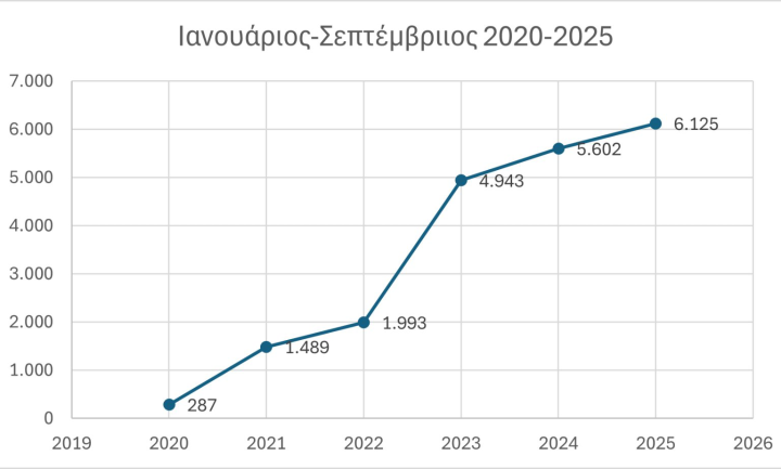 Αν υπάρχει μία βεβαιότητα, είναι ότι η αγορά των ηλεκτρικών αυτοκινήτων στην Ελλάδα συνδέεται άμεσα με τις κρατικές επιδοτήσεις, κυρίως μέσω των προγραμμάτων Κινούμαι Ηλεκτρικά. Όταν υπάρχουν διαθέσιμα κεφάλαια, οι πωλήσεις ανεβαίνουν γρήγορα. Όταν εξαντλούνται τα κεφάλαια, ο ρυθμός ανόδου μειώνεται σημαντικά. Αυτό ακριβώς φαίνεται στο γράφημα που ακολουθεί. Το 2020 και το 2021 είχαμε την πρώτη έντονη αύξηση των πωλήσεων, χάρη στο Κινούμαι Ηλεκτρικά 1. Το 2022 η άνοδος ήταν πιο ήπια επειδή το Κινούμαι Ηλεκτρικά 2 άνοιξε από τα μισά της χρονιάς και μετά. Το 2023 με την επιδότηση των  9.000 ευρώ του Κινούμαι Ηλεκτρικά 3 οι ταξινομήσεις εκτοξεύτηκαν, ενώ το 2024 η αύξηση ήταν μικρότερη, λόγω των προβλημάτων που παρουσιάστηκαν στο πρόγραμμα.