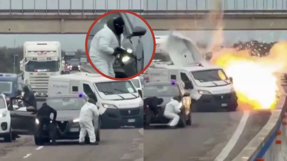 Ληστεία που παραπέμπει σε σκηνές δράσης κινηματογραφικής ταινίας, σημειώθηκε στην Ιταλία. Οι δράστες ανατίναξαν όχημα χρηματαποστολής στον αυτοκινητόδρομο, μέρα μεσημέρι.