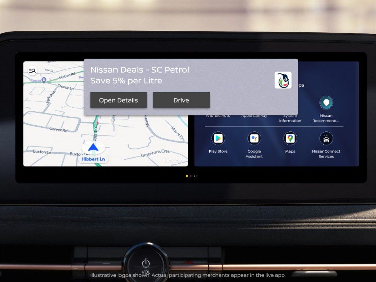 Η εφαρμογή Nissan Deals χρησιμοποιεί καταρχήν δεδομένα του αυτοκινήτου, όπως για παράδειγμα η στάθμη καυσίμου ή το επίπεδο φόρτισης της μπαταρίας, και βρίσκει προσφορές ανάλογα με την τοποθεσία σε πραγματικό χρόνο, τις οποίες μεταφέρει στον οδηγό. Μάλιστα, για λόγους ασφαλείας, αυτές εμφανίζονται μόνο όταν το αυτοκίνητο είναι σταθμευμένο. Ο οδηγός μπορεί να τις δει στην οθόνη του αυτοκινήτου και εν συνεχεία έχει τη δυνατότητα να διαβάσει τις όποιες λεπτομέρειες, να κατευθυνθεί στον προορισμό ή και να εξαργυρώσει την προσφορά μέσω QR code. Επιπλέον, υπάρχει η δυνατότητα αναζήτησης προσφορών ενώ το αυτοκίνητο είναι σταθμευμένο, έτσι ώστε οι οδηγοί να προγραμματίσουν αυτές που τους ενδιαφέρουν εκ των προτέρων. Σημειώστε, πως η εφαρμογή Nissan Deals διατίθεται δωρεάν.