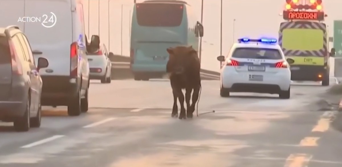 Το ζώο έτρεχε φοβισμένο και ανεξέλεγκτο στον αυτοκινητόδρομο, με τους οδηγούς να μην πιστεύουν αυτό που αντικρίζουν.
