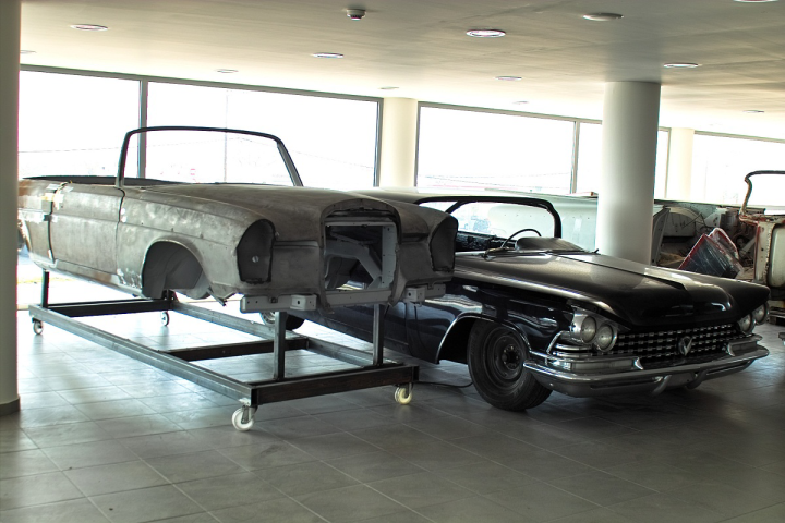 Και εδώ έστησε τη δουλειά που ήξερε, αρχικά τη φανοποιεία και μετά προχώρησε στις ανακατασκευές. Τα αυτοκίνητα έρχονταν και έρχονται ακόμα και σήμερα από το εξωτερικό και θα τα δείτε διάσπαρτα στις εγκαταστάσεις, σε διάφορες φάσεις ανακατασκευής.