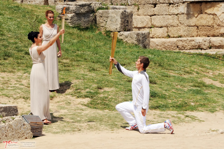 Τη στιγμή που το πολιτικό προσκήνιο αναζητά την τύχη των διερευνητικών εντολών, η Αρχαία Ολυμπία στέλνει την πιο όμορφη εικόνα της Ελλάδας στην υφήλιο. Η επίκληση στον Απόλλωνα, από την Πρωθιέρεια να στείλει τις ακτίνες του ήλιου ακούστηκαν σχεδόν εκκωφαντικά στην απόλυτη ησυχία του αρχαίου σταδίου. Μπορεί φέτος η παρουσία των επισκεπτών να ήταν μικρότερη από την αναμενόμενη, ωστόσο όλα πήγαν στην εντέλεια. Ακόμη κι όταν το ελαφρύ αεράκι έσβησε τη φλόγα που έκαιγε μέσα στον κρατήρα στα χέρια της Εστιάδας, επανήλθε η τάξη υπό τις επευφημίες του κόσμου. Ο αμφιθαλής παις πήρε το κλαδί από την Ιερά Άλτι, τον κότινο, σύμβολο νίκης και τιμής. Στο χώρο του αρχαίου σταδίου πραγματοποιήθηκε κατόπιν το υπόλοιπο τελετουργικό με τις Ιέρειες να εκτελούν τη χορογραφία «Ο Χορός των Νυμφών» εμπνευσμένη από την αρχαιότητα και τους δεκατέσσερις νέους στον «Άοπλο Πυρρίχιο» ο οποίος προς έμφαση της εκεχειρίας εκτελείται από χορευτές χωρίς όπλα. Οι ομιλίες των επισήμων τυπικές όπως πάντα για να μην μπούμε ότι η φωνή του Αλέξη Κωστάλα στα μεγάφωνα ήταν εκ των ουκ άνευ. Ο Σπύρος Γιαννιώτης, πρωταθλητής μας στην κολύμβηση, παρέλαβε τη δάδα ως πρώτος λαμπαδηδρόμος στη διαδρομή των 2900 χιλιομέτρων που θα γίνουν στη χώρα μας μέσα στις επόμενες οκτώ ημέρες καθοδόν προς το Λονδίνο. Η φλόγα από χέρι σε χέρι θα φτάσει από την Αρχαία Ολυμπία μέχρι τους Κήπους του Έβρου και από την Ηγουμενίτσα μέχρι το Καστελόριζο για να παραδοθεί στους διοργανωτές στο Παναθηναϊκό Στάδιο στις 17 Μαΐου.
