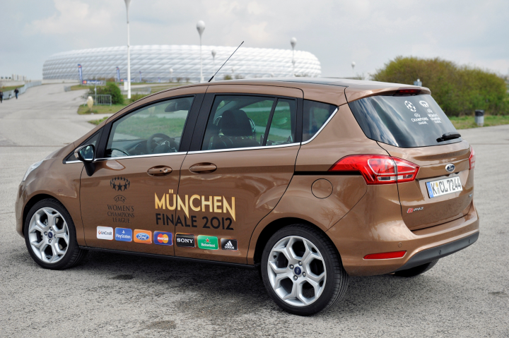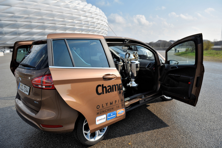 Το Σάββατο 19 Μαΐου 2012, η Μπάγερν Μονάχου έχασε τη μεγάλη ευκαιρία να σηκώσει την κούπα μέσα στην έδρα της, χάνοντας στον τελικό του UEFA Champions League από την Τσέλσι. Ίσως θα έπρεπε να πάρει μαθήματα από τη… Ford, η οποία είναι εδώ και 20 χρόνια ο βασικός παίκτης (βλέπε επίσημος χορηγός) της κορυφαίας διοργάνωσης και δικαιούται να το γιορτάζει σαν νικητής, εντός έδρας! Πως το γιόρτασε; Με ένα Β-ΜΑΧ, μέσα στο οποίο το θρυλικό τρόπαιο του Champions League παρέλασε στο Μόναχο, σε κοινή θέα χάρη στο Easy Access Door System, με το τεράστιο άνοιγμα (χωρίς μεσαίες κολώνες) που εξασφαλίζουν οι εμπρός και οι συρόμενες πίσω πόρτες. Μάλιστα, οι φίλαθλοι είχαν την ευκαιρία να εκτιμήσουν την κορυφαία προσβασιμότητα του B-MAX με ένα διαγωνισμό πέναλτι στο Olympiapark του Μονάχου. Με τη βοήθεια της Τεχνολογίας Hawkeye αξιολογήθηκαν η ταχύτητα και ακρίβεια των σουτ τα οποία στόχευαν σε ένα αντίγραφο του λογοτύπου B-MAX, αναπαριστώντας το κορυφαίο άνοιγμα θυρών 1,5m.
