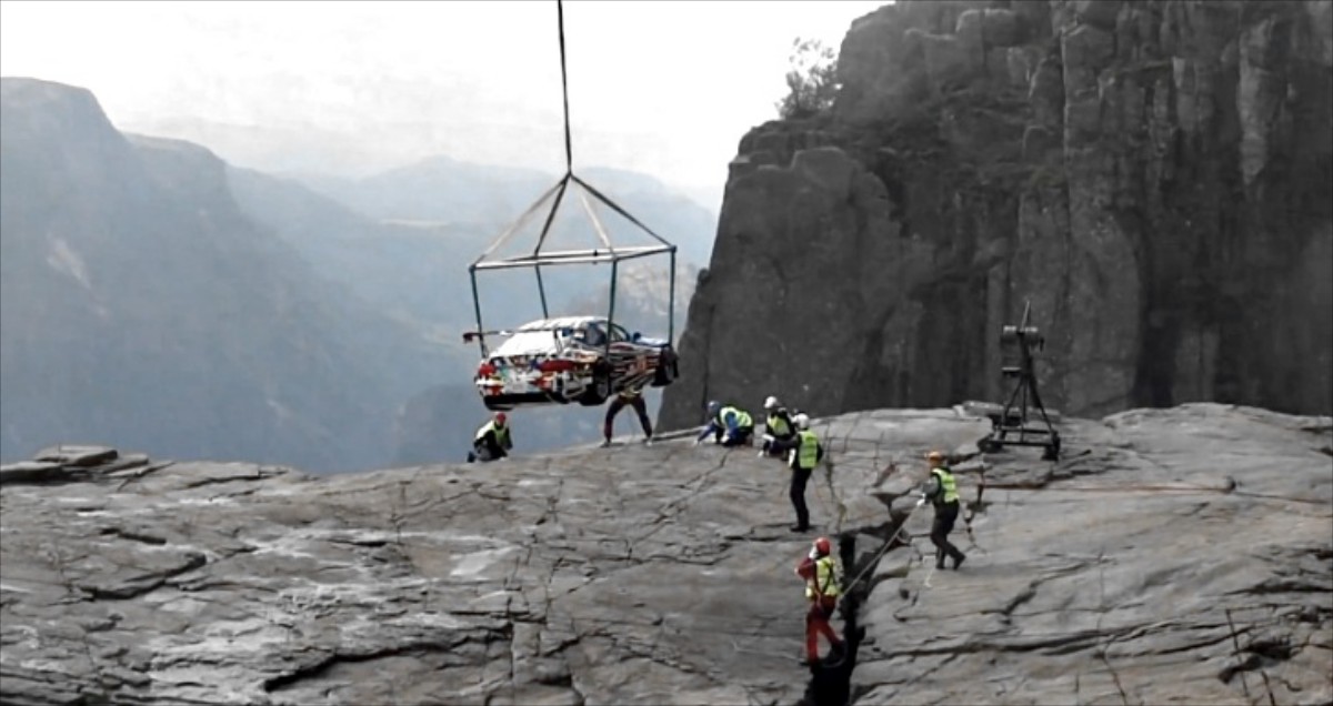 Η πιο συνήθης πρακτική για τη δημιουργία παρόμοιων συνθέσεων είναι με Photoshop σε μία οθόνη υπολογιστή. Όμως  στην BMW ήθελαν το διαφημιστικό τους να είναι πραγματικό στην κάθε του λεπτομέρεια, έτσι η μόνη επιλογή για να υλοποιηθεί το σενάριο ήταν να ανεβάσουν την M3 GT2 στην κορυφή του Pulpit Rock στο Preikestolen όπου τα κατακόρυφα βράχια ύψος 600 μέτρων αποτελούν έναν μοναδικής ομορφιάς τουριστικό προορισμό. Ο Jef Koons ζωγράφισε το αυτοκίνητο και μία ομάδα εξειδικευμένη στις μεταφορές με ελικόπτερο ανέλαβε τα υπόλοιπα.