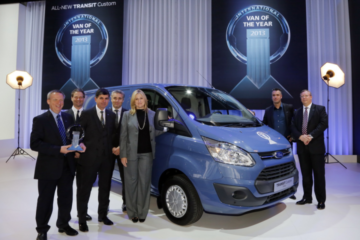 Το νέο Ford Transit Custom ανακηρύχθηκε «International Van of the Year 2013» στην Έκθεση Επαγγελματικού Αυτοκινήτου (IAA) που γίνεται κάθε χρόνο στο Αννόβερο. Είναι το τέταρτο Transit που κερδίζει το βραβείο, ακολουθώντας τα βήματα των Transit (2001), Transit Connect (2003) και Transit (2007) στην 22-ετή ιστορία του θεσμού.