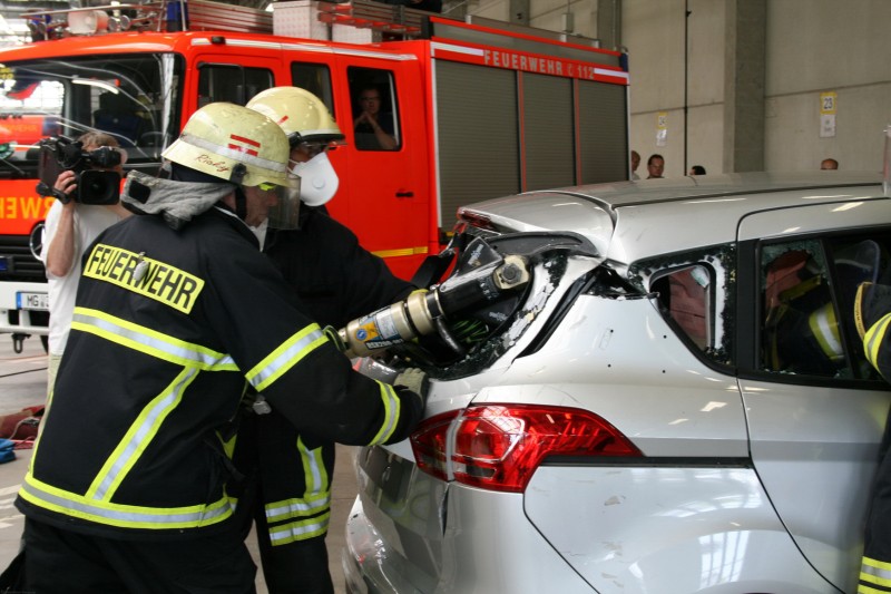 JörgLampe, αρχηγός της πυροσβεστικής του Mönchengladbach (Γερμανία): “Μάθαμε τα καλύτερα σημεία για να το κόψουμε – και το σημαντικότερο, πού να μην κόψουμε. Δεν έχουμε δουλέψει ποτέ σε όχημα χωρίς κεντρική κολόνα και έχω εντυπωσιαστεί από τη στιβαρότητα της δομής του B-MAX. Μάθαμε πολλά, όχι μόνο για το αμάξωμα αλλά και για τη θέση των αερόσακων και άλλων συστημάτων – που μπορούν πραγματικά να βοηθήσουν όταν χρειάζεται να ανοίξουμε ένα όχημα”.