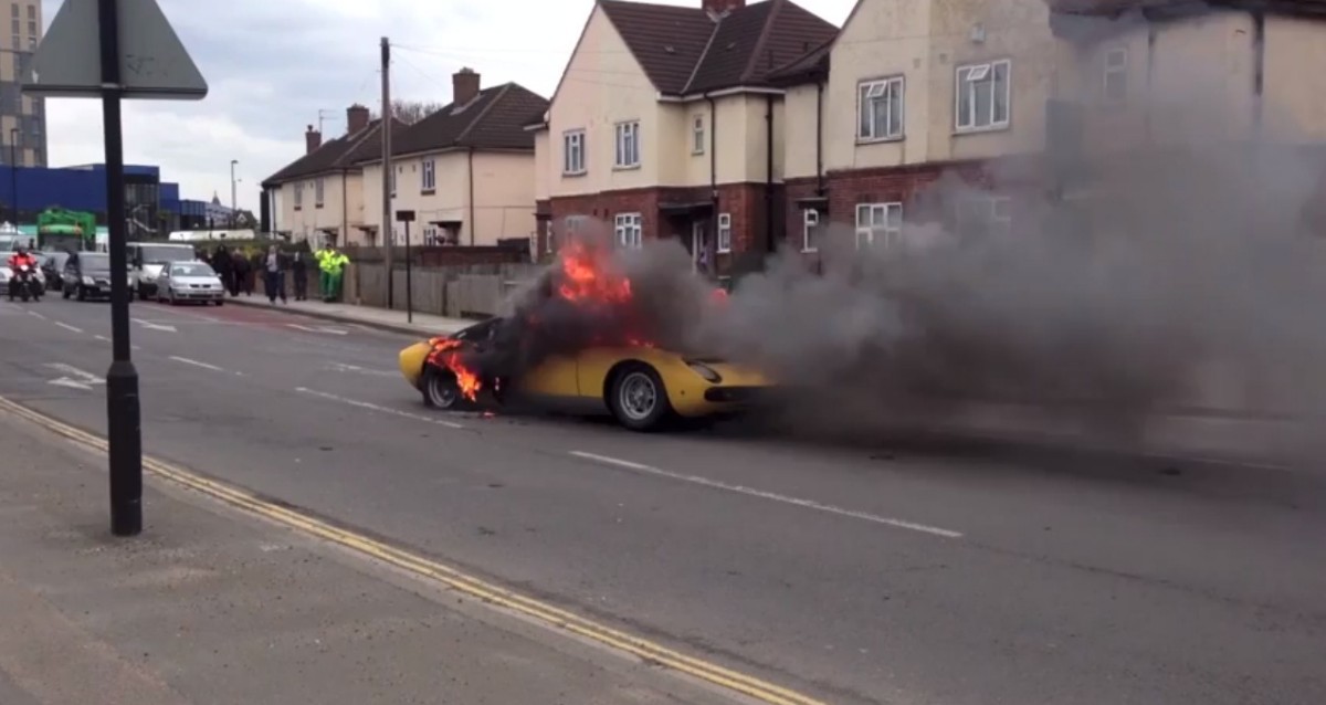 Μετά την φανταχτερή Mercedes 300 SL που καταστράφηκε ολοσχερώς σε ατύχημα, είχαμε άλλη μια classic απώλεια. Μια απαστράπτουσα Lamborghini Miura SV έγινε παρανάλωμα του πυρός στο κέντρο του Λονδίνου. Αν και ακόμη δεν υπάρχουν πληροφορίες για τα αίτια, η φωτιά φαίνεται πως ξεκίνησε από τον χώρο του κινητήρα. Αν αντέχει η καρδιά σου, δες στο παραπάνω video τη Miura να γίνεται στάχτη και μπούρμπερη…