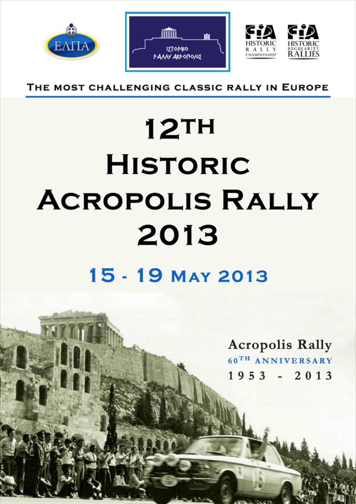 Στο τελικό στάδιο βρίσκεται ο σχεδιασμός του 12ου Ιστορικού Ράλλυ Ακρόπολις που θα διεξαχθεί στις 15-18 Μαΐου 2013. Η πρόσφατη υπογραφή της συμφωνίας για το ασφαλιστήριο συμβόλαιο των αγώνων από την Ομοσπονδία εξάλειψε το πάγωμα των αγωνιστικών δραστηριοτήτων στη χώρα μας, και έδωσε το «πράσινο φως» για την έναρξη των αγώνων αυτοκινήτου, και φυσικά για το διεθνή μας αγώνα, ο οποίος εκτός από τα Ευρωπαϊκά Πρωταθλήματα Ιστορικών Αυτοκινήτων, προσμετρά και για τους εγχώριους τίτλους Sporting και Regularity.