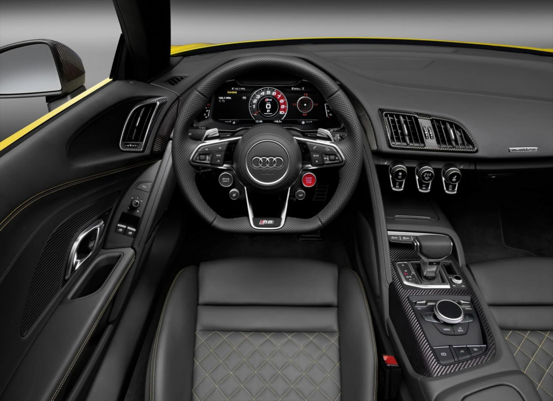 Η ισχύς προέρχεται από τον γνώριμο V10 ατμοσφαιρικό κινητήρα 5.2, ο οποίος αποδίδει 540 ίππους και 540 Nm ροπής στις 6.500 rpm. Αυτή η απόδοση επιτρέπει στο ανοιχτό μοντέλο να επιταχύνει και να φτάσει τα 100 km/h από στάση σε 3,6 sec, ενώ η τελική ταχύτητα είναι 318 km/h. Οι μηχανικοί της Audi ασχολήθηκαν και με την αυτονομία του, με αποτέλεσμα το υπεραυτοκίνητο να «καίει» 11,7 lt/ 100 km και οι εκπομπές ρύπων CO2 να είναι 277 g/km. Το μοτέρ συνεργάζεται με το σύστημα τετρακίνησης Quattro και με ένα αυτόματο κιβώτιο διπλού συμπλέκτη 7 σχέσεων.