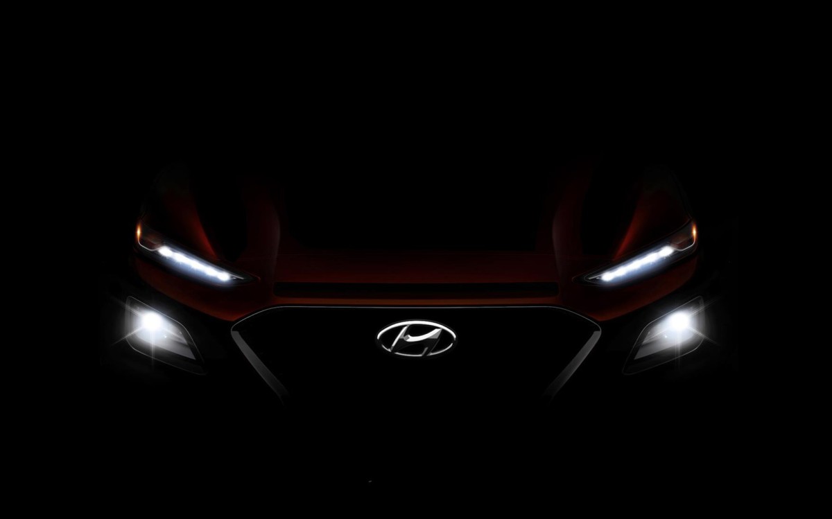 Επιπλέον σχεδιαστικές λεπτομέρειες του Kona, του νέου της SUV, έδωσε στη δημοσιότητα η Hyundai, μέσω μίας νέας φωτογραφίας. Μπορεί να είναι σκοτεινή, όμως παρατηρούμε τα διπλά φωτιστικά σώματα με τα φώτα ημέρας LED πάνω από τους κύριους προβολείς, επίσης τεχνολογίας LED. Η εξάγωνη μεγάλη μάσκα ολοκληρώνει την εικόνα του εμπρός μέρους, η οποία θα χαρακτηρίζει και τα επόμενα μοντέλα της Hyundai.