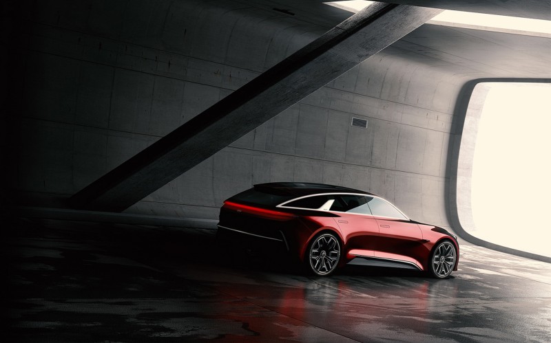 Επίσημες πληροφορίες σχετικά με αυτό το εντυπωσιακό concept δεν έδωσε η Kia, αφήνοντας την εικόνα να μιλήσει από μόνη της. Επιθετικές, σπορ γραμμές, με μικρούς προβόλους, τεράστιους τροχούς και κυρτή οροφή που χαρίζει στο μοντέλο την αίσθηση του κουπέ, παρά τις πέντε πόρτες του. Η απουσία των πλαισίων στα παράθυρα και η «κομμένη» τρίτη κολόνα δίνουν την αίσθηση της αιωρούμενης οροφής. Το πίσω μέρος είναι έντονα στρογγυλεμένο, με ενιαίο φωτιστικό σώμα που διατρέχει όλο το πλάτος του αμαξώματος.
