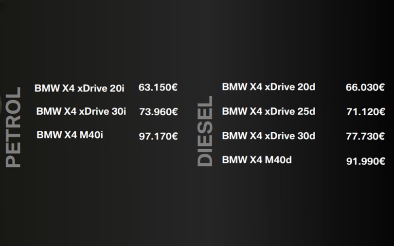 Η BMW προσφέρει τη νέα Χ4 σε τρεις διαφορετικές εκδόσεις: