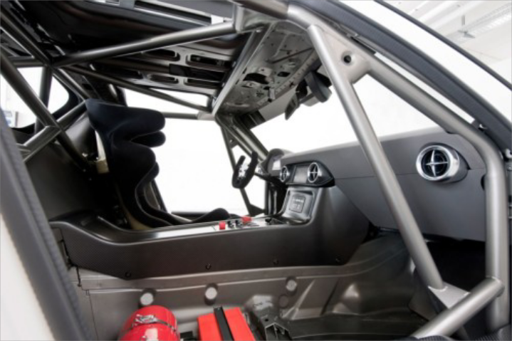 Σε νέες περιπέτειες μπαίνει και ο εκρηκτικός V8 κινητήρας 6.3 λίτρων ο οποίος συνεργάζεται με ένα σειριακό κιβώτιο 6 σχέσεων, ενώ θα υπάρχει και ένα πολύδισκο διαφορικό περιορισμένης ολίσθησης. Το κιβώτιο όπως και στην έκδοση δρόμου εδράζεται στον πίσω άξονα για καλύτερη κατανομή βάρους. Όλα τα παρελκόμενα της ανάρτησης έχουν ρυθμιστεί με στόχο την οδήγηση στην πίστα. Πίσω από τους θηριώδης τροχούς της AMG, από ελαφριά κράματα μετάλλου, κρύβονται τα φρένα από συνθετικά υλικά, τα οποία συνεργάζονται με το αγωνιστικό ABS.