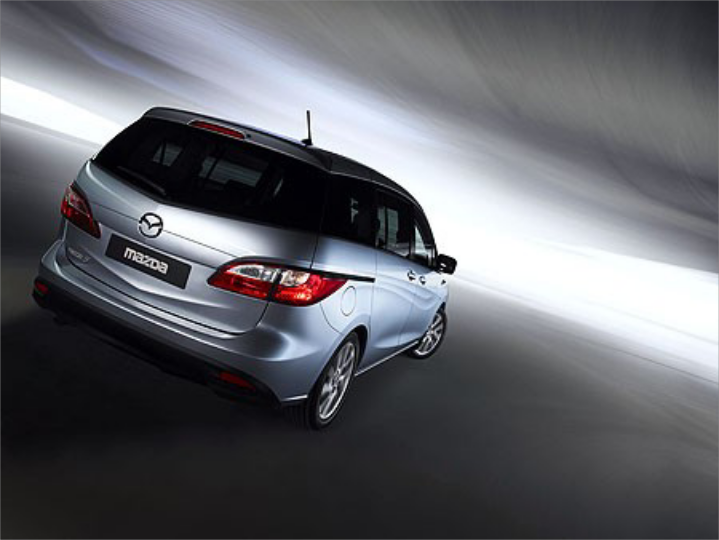 Με σημαντικές σχεδιαστικές αλλαγές κυρίως προς την συντηρητική κατεύθυνση και ένα εμπρός μέρος που μοιράζεται κοινά στοιχεία με το Mazda 3, παρουσιάζεται το ανανεωμένο Mazda 5. Η πλαϊνή όψη χαρακτηρίζεται από ιδιαίτερα σχεδιαστικά «νεύρα» και τις μεγάλες συρόμενες πίσω πόρτες, οι οποίες προσφέρουν πόντους στην πρακτικότητα, συμβαδίζοντας με την πολυμορφική λογική.