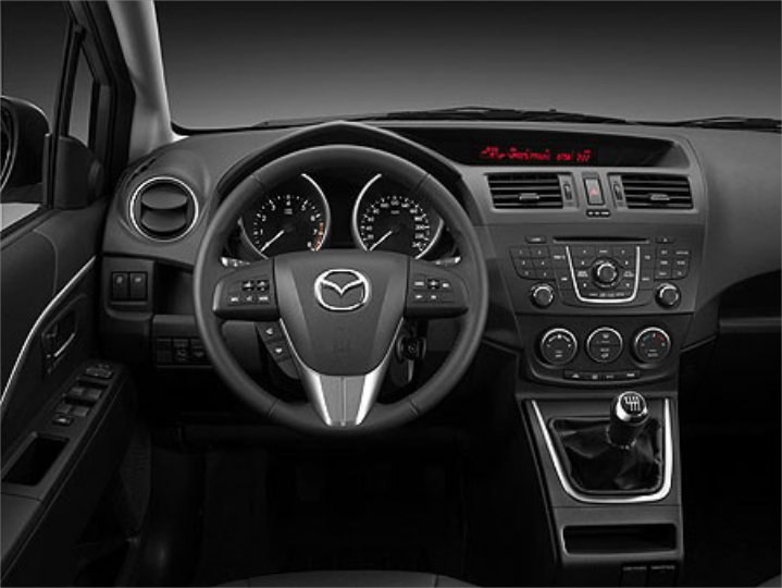 Με σημαντικές σχεδιαστικές αλλαγές κυρίως προς την συντηρητική κατεύθυνση και ένα εμπρός μέρος που μοιράζεται κοινά στοιχεία με το Mazda 3, παρουσιάζεται το ανανεωμένο Mazda 5. Η πλαϊνή όψη χαρακτηρίζεται από ιδιαίτερα σχεδιαστικά «νεύρα» και τις μεγάλες συρόμενες πίσω πόρτες, οι οποίες προσφέρουν πόντους στην πρακτικότητα,  συμβαδίζοντας με την πολυμορφική λογική.