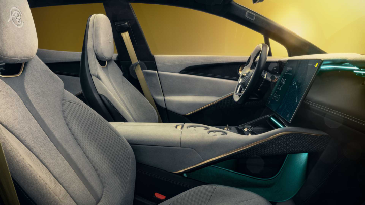 Στο κέντρο της κονσόλας δεσπόζει η τεράστια οθόνη αφής 15,1 ιντσών συμβατή με δίκτυο 5G, μπροστά από το τιμόνι υπάρχει μια στενόμακρη ψηφιακή οθόνη για τον πίνακα οργάνων, όπως και στη θέση του συνοδηγού.