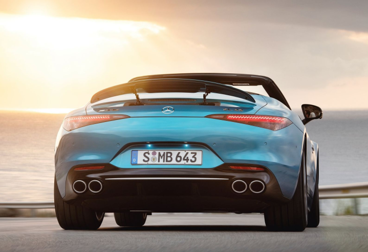 Κοιτώντας την ως εξωτερικός παρατηρητής, η μικρότερη SL 43 δεν διαφέρει από τις μεγαλύτερες εκδόσεις με τους V8 κινητήρες. Τα μόνα στοιχεία που αλλάζουν είναι οι στρογγυλές απολήξεις της εξάτμισης στο πίσω μέρος, αλλά και οι ζάντες. Η SL 43 έρχεται με στάνταρ 19άρες, ωστόσο αν θελήσει ο ιδιοκτήτης, μπορεί να επιλέξει 20 ή 21 ίντσες από τη λίστα των έξτρα, αυτές που φοράνε και οι V8.